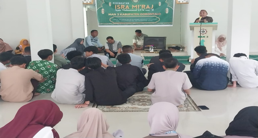 MAN 2 KABGOR – Isra’ Mi’raj merupakan momentum spiritual yang sangat penting untuk mengajak seluruh warga madrasah meneladani akhlak Rasulullah SAW serta memperkuat pemahaman keagamaan, khususnya tentang kewajiban shalat lima waktu, olehnya Civitas Madrasah Aliyah Negeri (MAN) 2 Kabupaten Gorontalo (Kabgor) peringati peristiwa tersebut yang bertempat di masjid madrasah, Jum’at ( 23/1/2026).